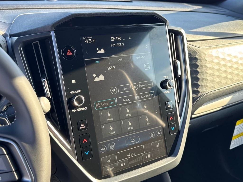 This vehicle includes the following features: Standard Model, 2.5L 4-Cylinder DOHC 16V, 11 Speakers, 4-Wheel Disc Brakes, ABS brakes, Air Conditioning, Alloy wheels, AM/FM radio: SiriusXM with 360L, Anti-whiplash front head restraints, Auto High-beam Headlights, Auto-Dimming Exterior Mirror with Approach Light, Auto-Dimming Mirror with Compass and HomeLink, Automatic temperature control, Brake assist, Bumpers: body-color, Compass, Driver door bin, Driver vanity mirror, Dual front impact airbags, Dual front side impact airbags, Electronic Stability Control, Emergency communication system: MySubaru Safety (3-year free trial), Exterior Parking Camera Rear, Four wheel independent suspension, Front anti-roll bar, Front Bucket Seats, Front Center Armrest, Front dual zone A/C, Front fog lights, Front reading lights, Fully automatic headlights, harman/kardon® Speakers, Heated door mirrors, Heated Front Bucket Seats, Heated front seats, Illuminated entry, Knee airbag, Low tire pressure warning, Navigation system: TomTom Navigation w/what3words, Occupant sensing airbag, Outside temperature display, Overhead airbag, Overhead console, Panic alarm, Passenger door bin, Passenger vanity mirror, Power door mirrors, Power driver seat, Power Liftgate, Power moonroof: Panoramic, Power passenger seat, Power steering, Power windows, Radio data system, Radio: Subaru 11.6 Multimedia Navigation System, Rear anti-roll bar, Rear seat center armrest, Rear window defroster, Rear window wiper, Remote keyless entry, Security system, Speed control, Speed-sensing steering, Splash Guards, Split folding rear seat, Spoiler, StarTex Upholstery, Steering wheel mounted audio controls, Tachometer, Telescoping steering wheel, Tilt steering wheel, Traction control, Trip computer, Turn signal indicator mirrors, Variably intermittent wipers, and Wheels: 18 x 7.0 J Dark Metallic Aluminum-Alloy.