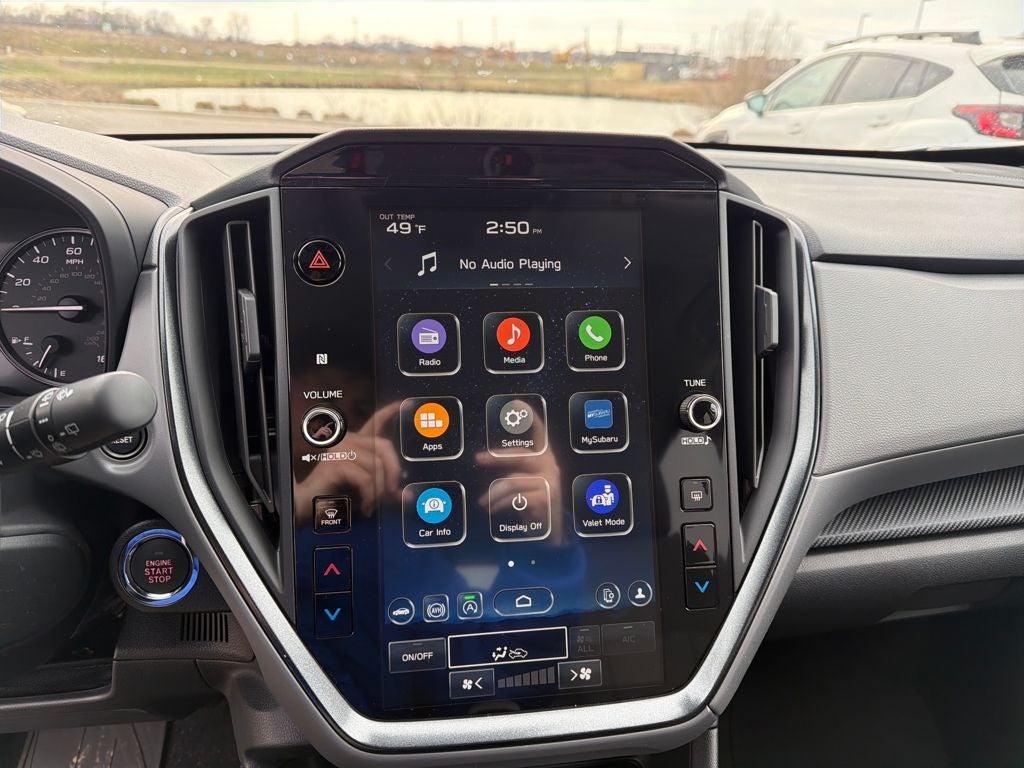 - Radio: Subaru 11.6" Multimedia Plus System -inc: AM/FM stereo, HD Radio, multi-touch gesture high resolution display screen, voice activated controls, Bluetooth® audio streaming and hands-free phone connectivity, Bluetooth® hands-free SMS text messaging connectivity, iPod control capability, smartphone integration: wired and wireless Android Auto w/full screen view and wireless Apple CarPlay w/full screen view, USB and Over The Air (OTA) audio system update, steering wheel audio system and Bluetooth® control switches, 6 speakers (2 dash panel tweeter, 2 front door and 2 rear door), illuminated 3.5mm auxiliary input jack, illuminated front USB A and C input/charge ports, connected services operation indicator, SOS emergency assistance: red SOS button and enhanced roadside assistance: blue i-button