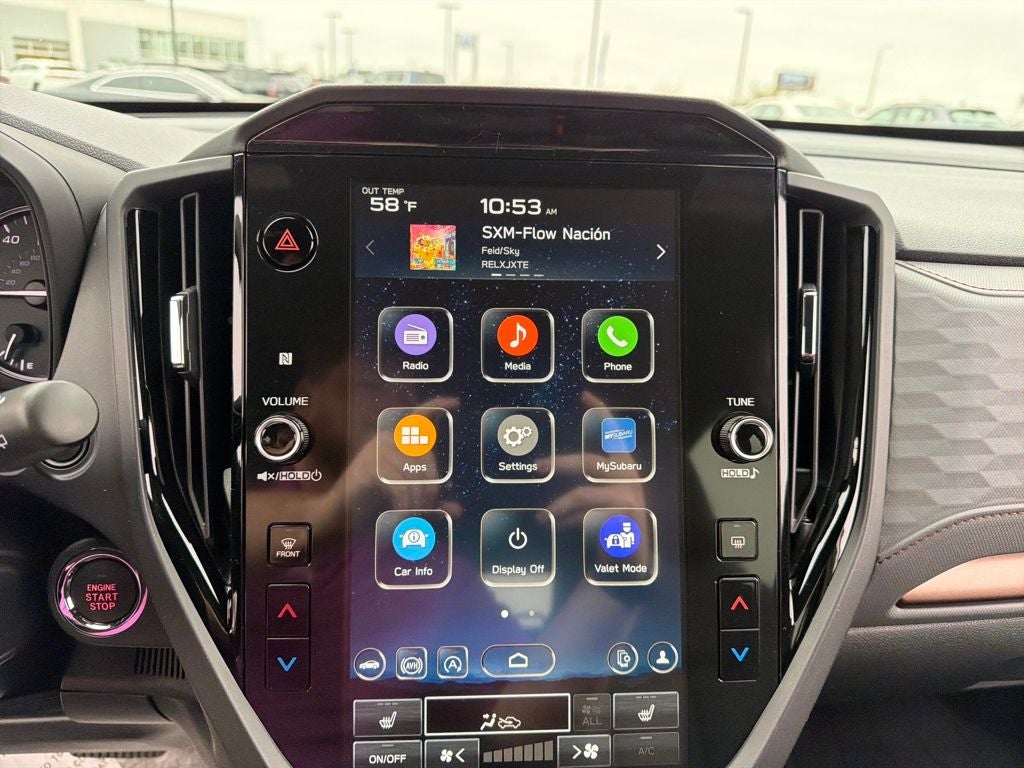 - Radio: Subaru 11.6" Multimedia Plus System -inc: valet mode, integrated center information display, AM/FM stereo HD Radio, multi-touch gesture high resolution display screen, voice activated controls, Bluetooth® audio streaming and hands-free phone connectivity w/SMS text messaging (refer to Subaru.com for cellphone compatibility), iPod control capability, smartphone integration: Android Auto and Apple CarPlay w/full screen view and wireless connection, SiriusXM satellite radio w/360L (free 4-month trial subscription included), USB and Over The Air (OTA) audio system update, steering wheel controls, 6 speakers, 3.5mm auxiliary input jack and roof mounted audio and satellite antenna