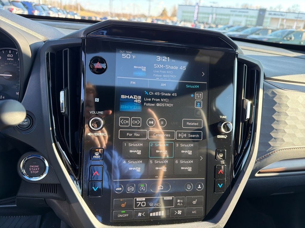 - Radio: Subaru 11.6" Multimedia Plus System -inc: valet mode, integrated center information display, AM/FM stereo HD Radio, multi-touch gesture high resolution display screen, voice activated controls, Bluetooth® audio streaming and hands-free phone connectivity w/SMS text messaging (refer to Subaru.com for cellphone compatibility), iPod control capability, smartphone integration: Android Auto and Apple CarPlay w/full screen view and wireless connection, SiriusXM satellite radio w/360L (free 4-month trial subscription included), USB and Over The Air (OTA) audio system update, steering wheel controls, 6 speakers, 3.5mm auxiliary input jack and roof mounted audio and satellite antenna