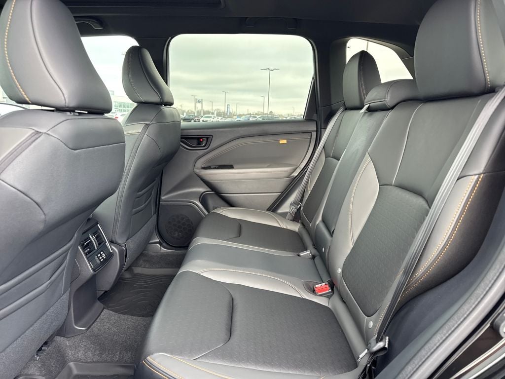 This vehicle includes the following features: Harman/Kardon Speaker System and Power Rear Gate (Power Rear Gate and Radio: Subaru 11.6 Multimedia Navigation System), 4-Wheel Disc Brakes, 6 Speakers, ABS brakes, Air Conditioning, Alloy wheels, AM/FM radio: SiriusXM with 360L, Anti-whiplash front head restraints, Auto High-beam Headlights, Auto-Dimming Exterior Mirror with Approach Light, Auto-Dimming Mirror with Compass and HomeLink, Automatic temperature control, Brake assist, Bumpers: body-color, Driver door bin, Driver vanity mirror, Dual front impact airbags, Dual front side impact airbags, Electronic Stability Control, Emergency communication system: MySubaru Companion (5-years free), Exterior Parking Camera Rear, Four wheel independent suspension, Front anti-roll bar, Front Bucket Seats, Front Center Armrest, Front dual zone A/C, Front fog lights, Front reading lights, Fully automatic headlights, Heated door mirrors, Heated Front Bucket Seats, Heated front seats, Illuminated entry, Knee airbag, Low tire pressure warning, Occupant sensing airbag, Outside temperature display, Overhead airbag, Overhead console, Panic alarm, Passenger door bin, Passenger vanity mirror, Power door mirrors, Power driver seat, Power moonroof: Panoramic, Power steering, Power windows, Radio data system, Radio: Subaru 11.6 Multimedia Plus System, Rain sensing wipers, Rear anti-roll bar, Rear seat center armrest, Rear window defroster, Rear window wiper, Remote keyless entry, Security system, Speed control, Speed-sensing steering, Split folding rear seat, Spoiler, Steering wheel mounted audio controls, Tachometer, Telescoping steering wheel, Textured StarTex Upholstery, Tilt steering wheel, Traction control, Trip computer, Turn signal indicator mirrors, Variably intermittent wipers, and Wheels: 17 x 7.0 J Matte Black Finish Aluminum-Alloy.