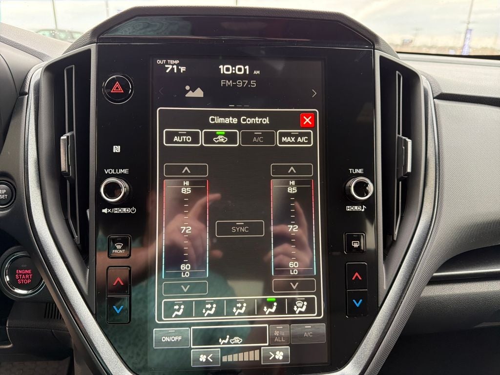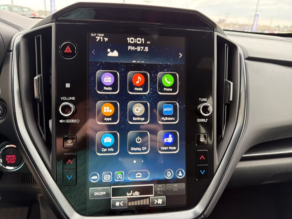 - Radio: Subaru 11.6" Multimedia Plus System -inc: valet mode, AM/FM stereo, HD Radio, multi-touch gesture high resolution display screen, voice activated controls, Bluetooth® audio streaming and hands-free phone connectivity, Bluetooth® hands-free SMS text messaging connectivity, iPod control capability, smartphone integration: wired and wireless Android Auto w/full screen view, wireless Apple CarPlay w/full screen view and wireless connection, USB and Over The Air (OTA) audio system update, audio system and Bluetooth® steering wheel control switches, 6 speakers (2 dash panel tweeter, 2 front door, 2 rear door), illuminated 3.5mm auxiliary input jack, illuminated USB A and C input charge ports, roof mounted satellite and connected services, roof mounted black antenna, connected services operation indicator, SOS emergency assistance (red button) and ehanced roadside assistance (blue i-button)