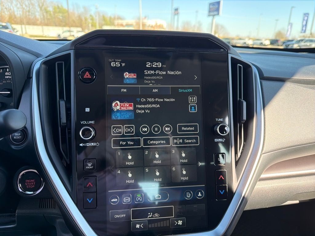 - Radio: Subaru 11.6" Multimedia Plus System -inc: valet mode, AM/FM stereo, HD Radio, multi-touch gesture high resolution display screen, voice activated controls, Bluetooth® audio streaming and hands-free phone connectivity, Bluetooth® hands-free SMS text messaging connectivity, iPod control capability, smartphone integration: wired and wireless Android Auto w/full screen view, wireless Apple CarPlay w/full screen view and wireless connection, USB and Over The Air (OTA) audio system update, audio system and Bluetooth® steering wheel control switches, 6 speakers (2 dash panel tweeter, 2 front door, 2 rear door), illuminated 3.5mm auxiliary input jack, illuminated USB A and C input charge ports, roof mounted satellite and connected services, roof mounted black antenna, connected services operation indicator, SOS emergency assistance (red button) and ehanced roadside assistance (blue i-button)