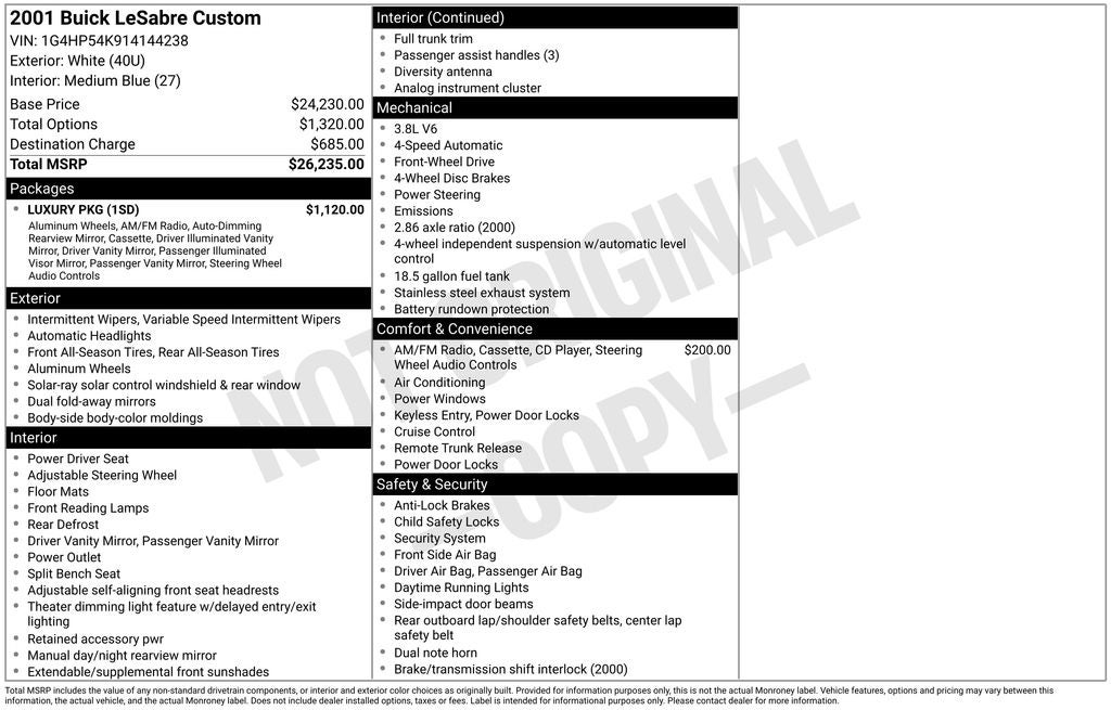 2001 Buick LeSabre Custom