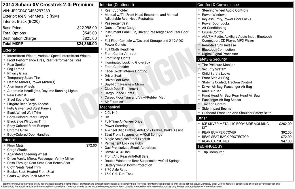 - Vehicle Name: Subaru XV Crosstrek