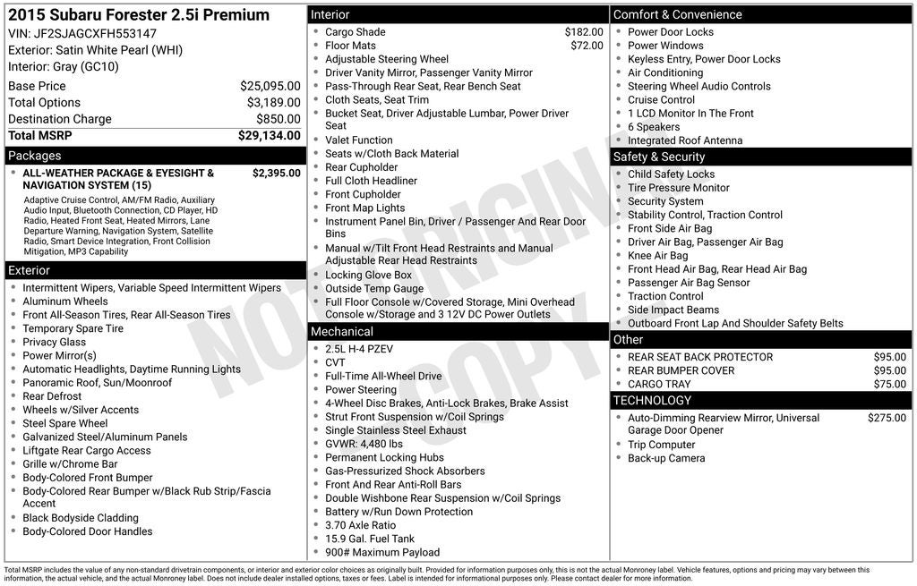 Whether you're embarking on a family adventure or tackling your daily commute, this 2015 Subaru Forester 2.5i Premium is the perfect companion. Experience the perfect blend of capability, technology, and comfort that Subaru is known for. Visit our showroom today and let us demonstrate how this exceptional SUV can elevate your driving experience.