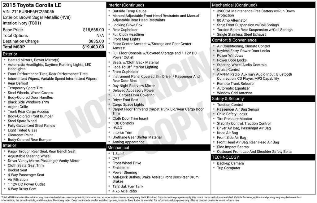 Whether commuting to work, running errands, or embarking on a weekend getaway, this 2015 Toyota Corolla L is the perfect companion. Its versatile design, reliable performance, and comprehensive feature set make it an exceptional value in the compact car segment.