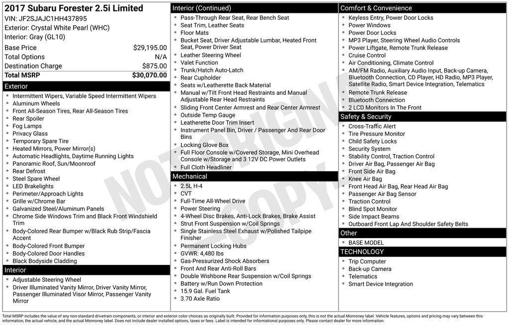 - Vehicle Name: Subaru Forester