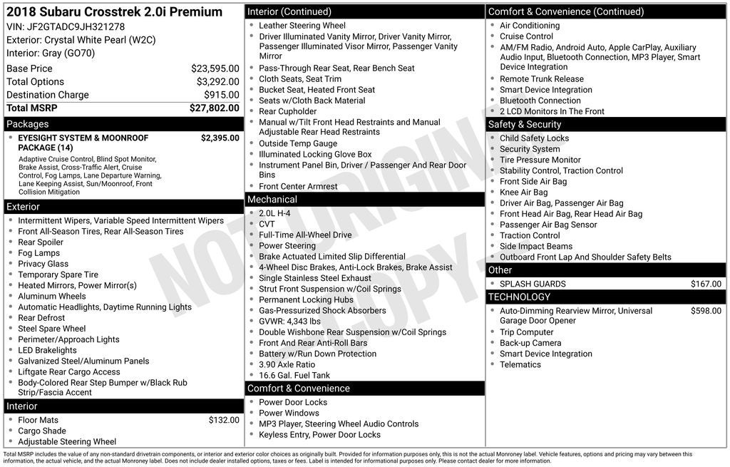 - Vehicle Name: Subaru Crosstrek
