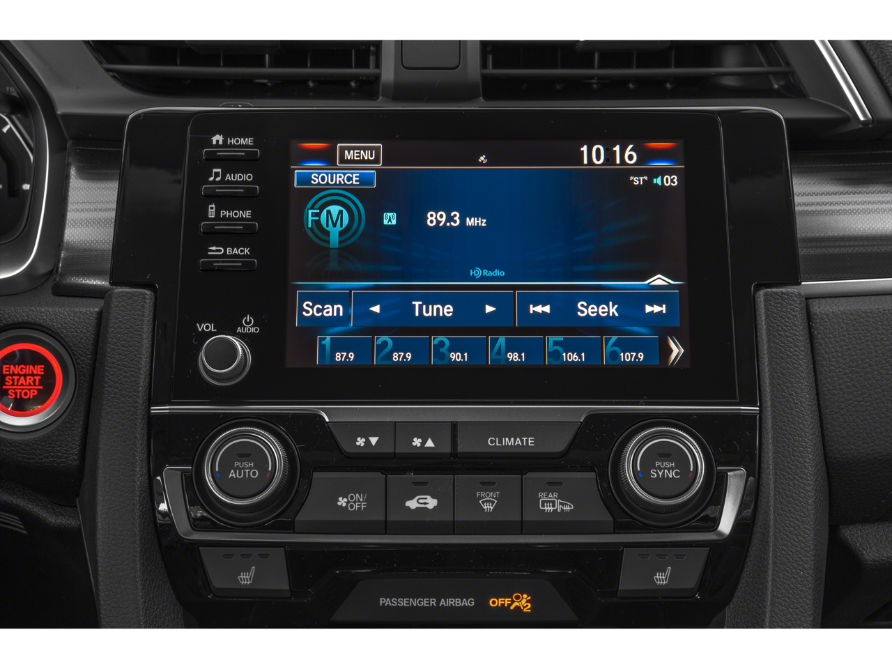 - Radio: 180-Watt AM/FM/HD/SiriusXM Audio System -inc: 8 speakers, 7-inch display w/high-resolution electrostatic touch-screen, knob and hard keys for primary controls and customizable feature settings, Bluetooth® HandsFreeLink, Bluetooth® streaming audio, radio data system (RDS), speed-sensitive volume compensation (SVC), 1.5-amp USB smartphone/audio interface in front, 1.0-amp USB audio interface port in center console, HondaLink, Apple CarPlay integration, Android Auto integration, SMS text message function, fin-type roof-mounted antenna and illuminated steering wheel-mounted controls