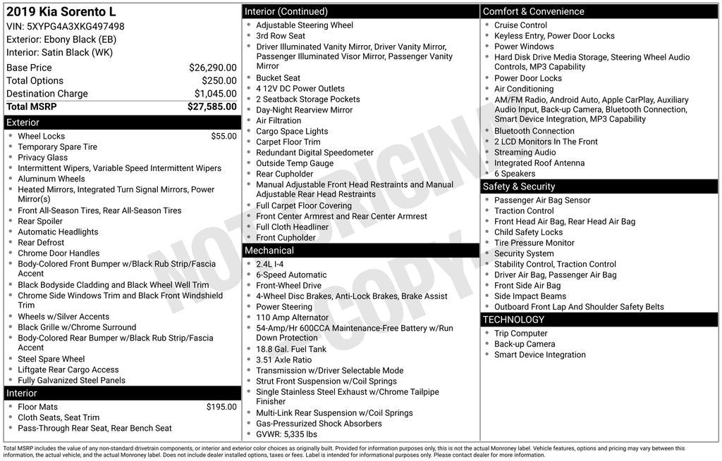 Discover the versatility and refinement of the 2019 Kia Sorento L. This SUV is designed to elevate your driving experience, with a focus on style, comfort, and cutting-edge technology. Visit our showroom today and let us demonstrate how the Sorento L can enhance your daily commute and weekend adventures.