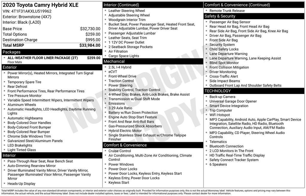 This exceptional 2020 Toyota Camry Hybrid XLE is a testament to the brand's commitment to quality, innovation, and customer satisfaction. Experience the perfect blend of efficiency, technology, and sophistication – schedule a test drive today and discover the difference for yourself.