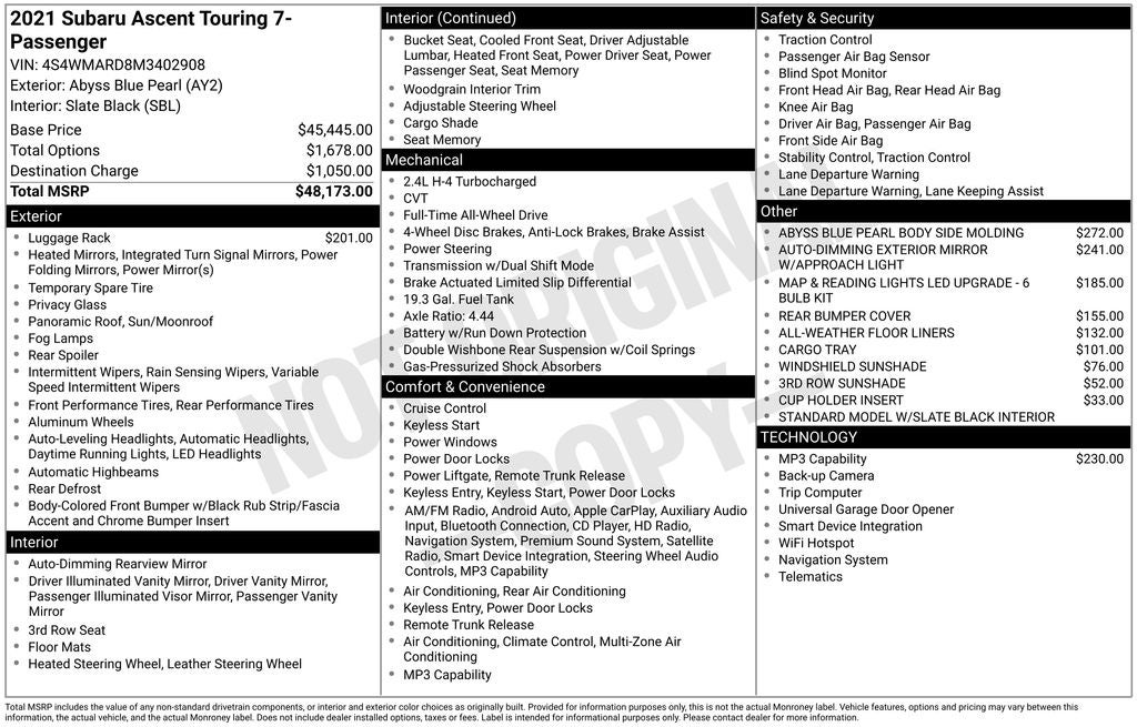 - Vehicle Name: Subaru Ascent