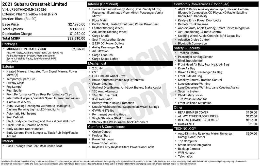 - Vehicle Name: Subaru Crosstrek