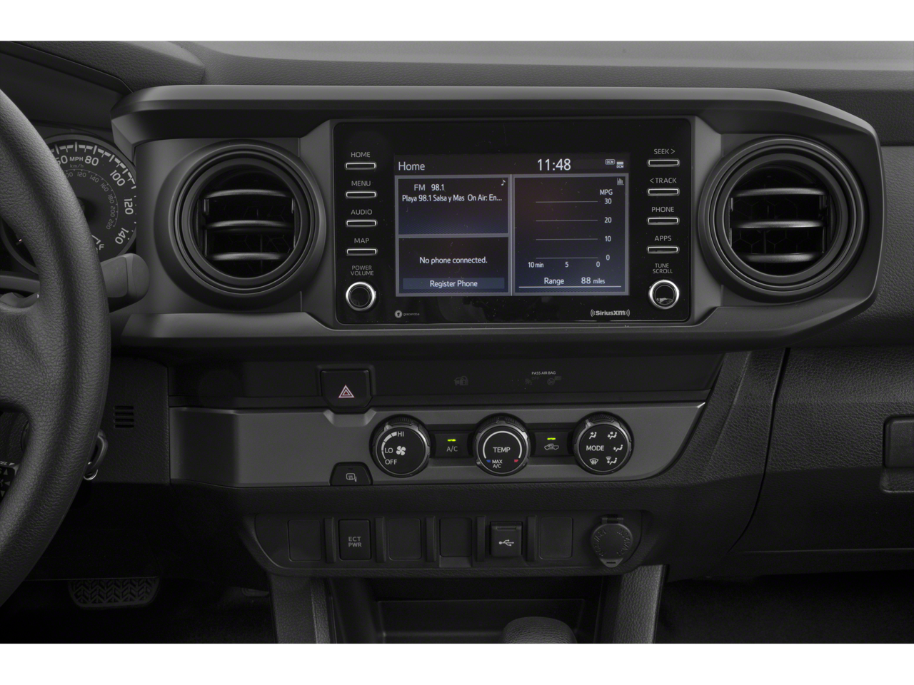 The Tacoma's impressive list of standard features ensures you'll enjoy a comfortable and convenient driving experience. Dual-zone climate control, a rearview camera, and a premium audio system with Apple CarPlay and Android Auto integration are just a few of the amenities that set this truck apart. And with Toyota's renowned reputation for quality and reliability, you can have peace of mind knowing your Tacoma will be a trustworthy companion for years to come.