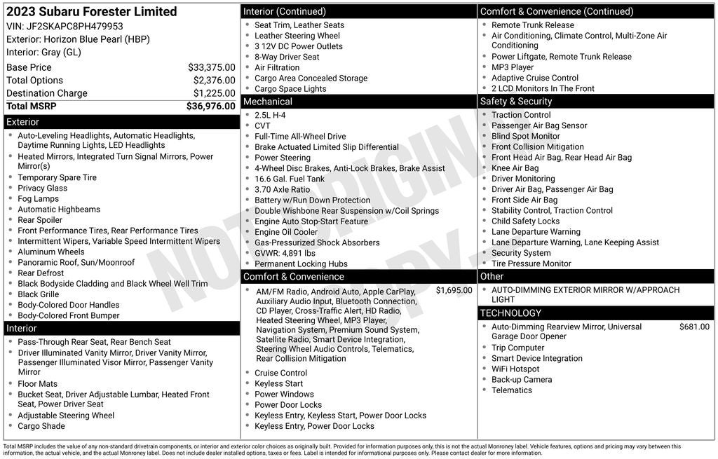 - Vehicle Name: Subaru Forester