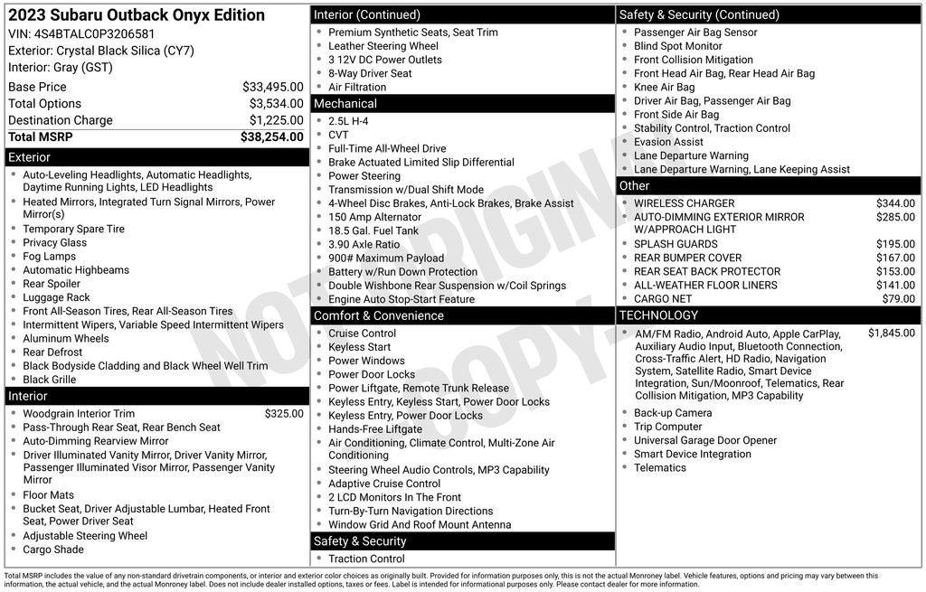 Whether you're embarking on a weekend adventure or tackling your daily commute, this 2023 Subaru Outback Onyx Edition is the perfect companion. Its blend of style, capability, and cutting-edge features make it a truly exceptional value in the midsize SUV segment.