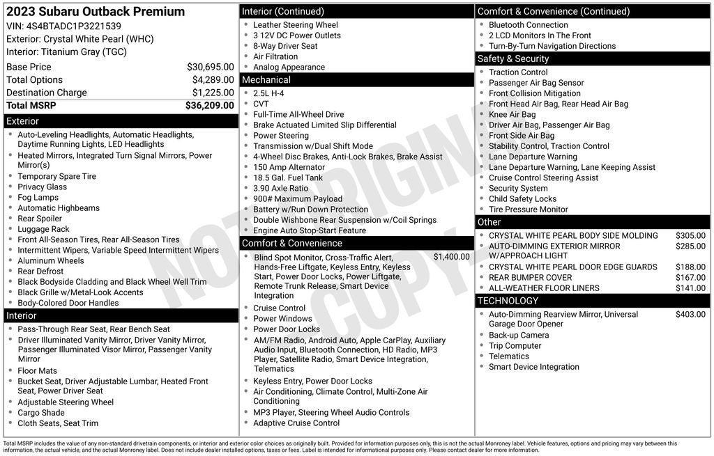 This well-maintained Outback Premium is a true testament to Subaru's commitment to quality and performance. With its exceptional features, impressive capabilities, and unparalleled safety, it's the perfect companion for your next adventure. We invite you to experience the exceptional value and uncompromising quality of this 2023 Subaru Outback Premium. Schedule a test drive today and discover the difference for yourself.