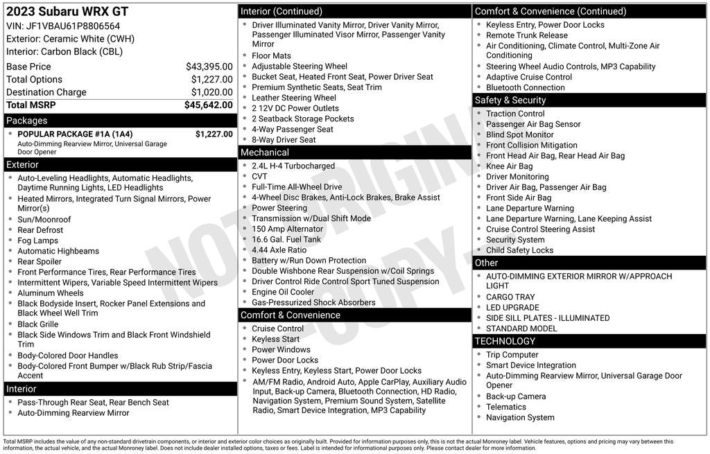 - Vehicle Name: Subaru WRX
