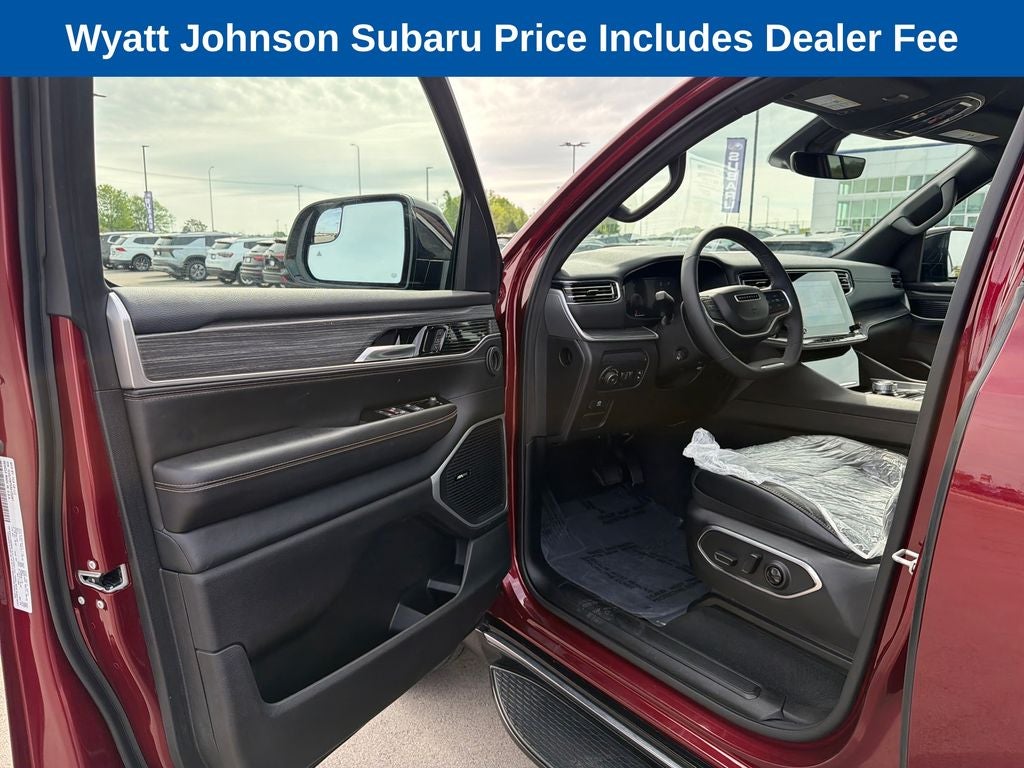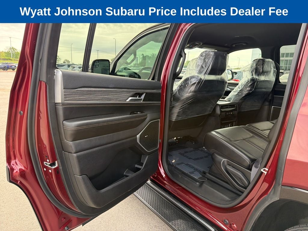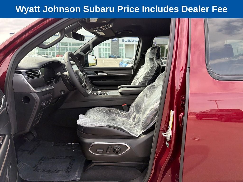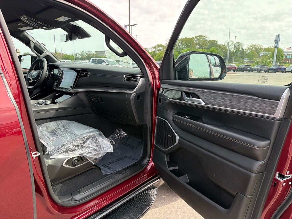 The Wagoneer's Velvet Red Pearlcoat exterior exudes a bold and sophisticated presence, while the 20-inch premium aluminum wheels add a touch of refined style. Inside, the cabin is appointed with genuine wood accents and leather-trimmed bucket seats, creating a truly premium experience. Heated and ventilated front seats, along with a heated steering wheel, ensure you and your passengers stay cozy no matter the weather.