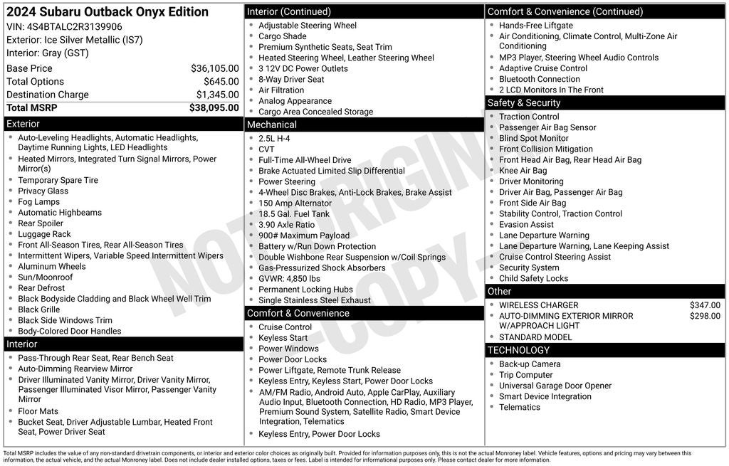 Experience the exceptional craftsmanship and capabilities of the 2024 Subaru Outback Onyx Edition for yourself. Visit our showroom today and let us demonstrate how this remarkable vehicle can elevate your driving experience.