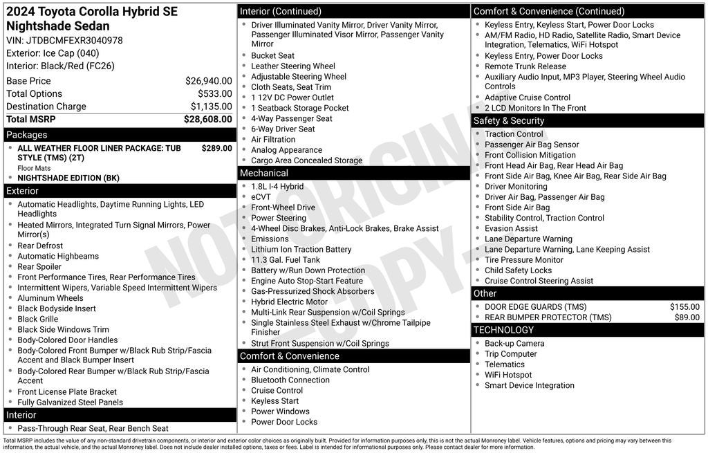 Whether you're commuting to the office, running errands, or embarking on a weekend getaway, this 2024 Toyota Corolla Hybrid Nightshade Edition is the perfect companion. Its blend of style, efficiency, and advanced features make it a standout in its class, and a compelling choice for the discerning buyer.