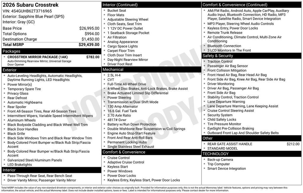 Experience the exceptional quality, performance, and safety of this 2026 Subaru Crosstrek Base. Schedule your test drive today and discover the perfect blend of versatility and technology that will elevate your driving experience.